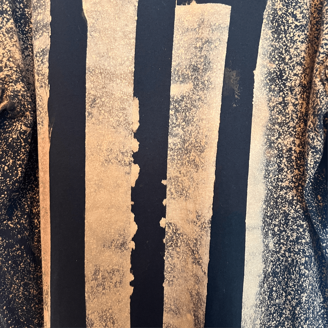 Our 1-of-1 bleach hand-painted tees are individually crafted by hand using a custom bleaching process that creates organic patterns directly in the fabric. No stencils. No repeats. Once a design is made, it cannot be recreated.